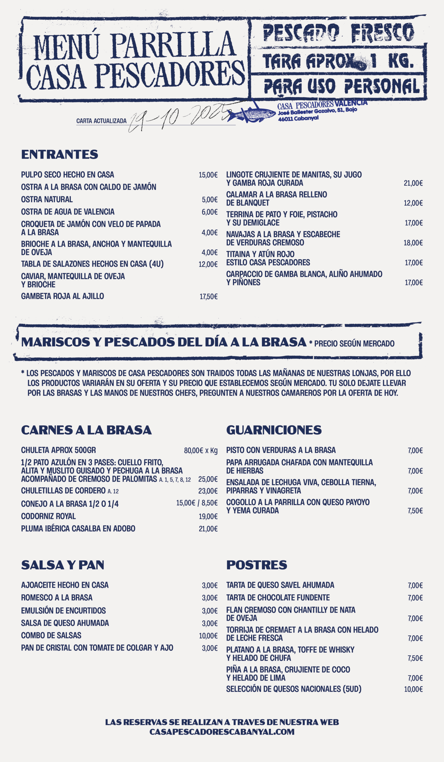 LA RESERVA SE REALIZA EN UNA DE LAS DOS ZONAS DE CASA PESCADORES: LA PARRILLA O EL RESTAURANTE CON SOBREMESA. DEBERÁ SELECCIONAR LA ZONA A LO LARGO DEL PROCESO DE RESERVA.